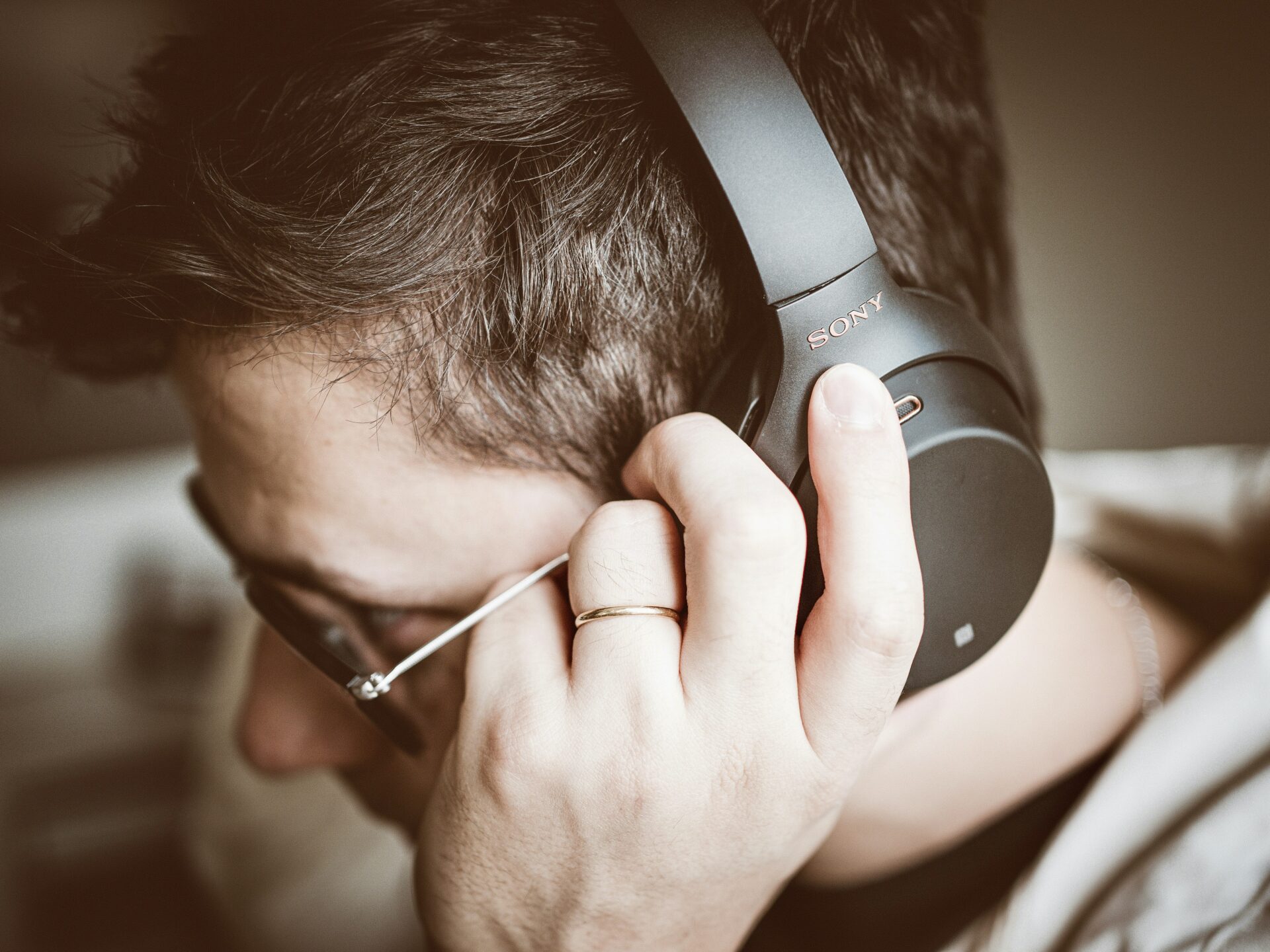 Listtening with headphones